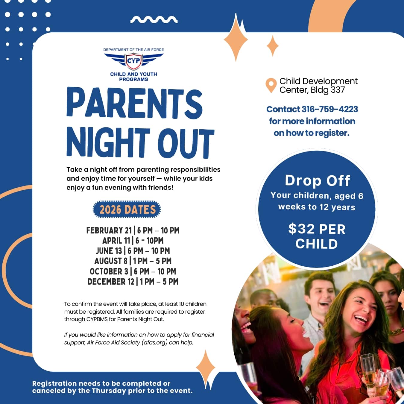 All families must register in CYPBMS for Parents Night Out.